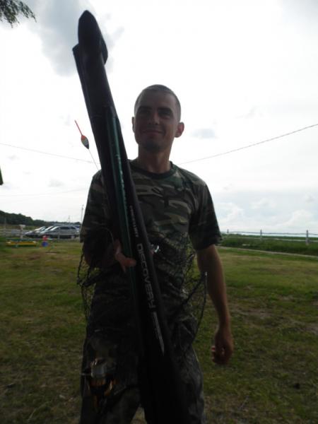 Позавчера съездили с зятем на Проню.Съездили удачно.У меня на первом забросе ,на МДЖ 4гр.Тиога,буквально на втором обороте удар и судак на кил.У Мишки на 5-6 забросе судак чуть поболе,затем за 2 часа ничего приличного .После этого сменили место и за пару часов надёргали пол ведра окуней неплохих ,после этого опять полная тишина.Через час стали собираться домой ,да и дождь задолбал ,вымокли до нитки.По берегу много народу сидят с фидерами и удочками,потихоньку ловят.Рядом с нами достали карася далеко за килограмм.Со спиннингом напротив нас парень на отводной тоже довольно много окуней надёргал,были и большие.Место озвучивать не буду,хотя сейчас места и так все знают.